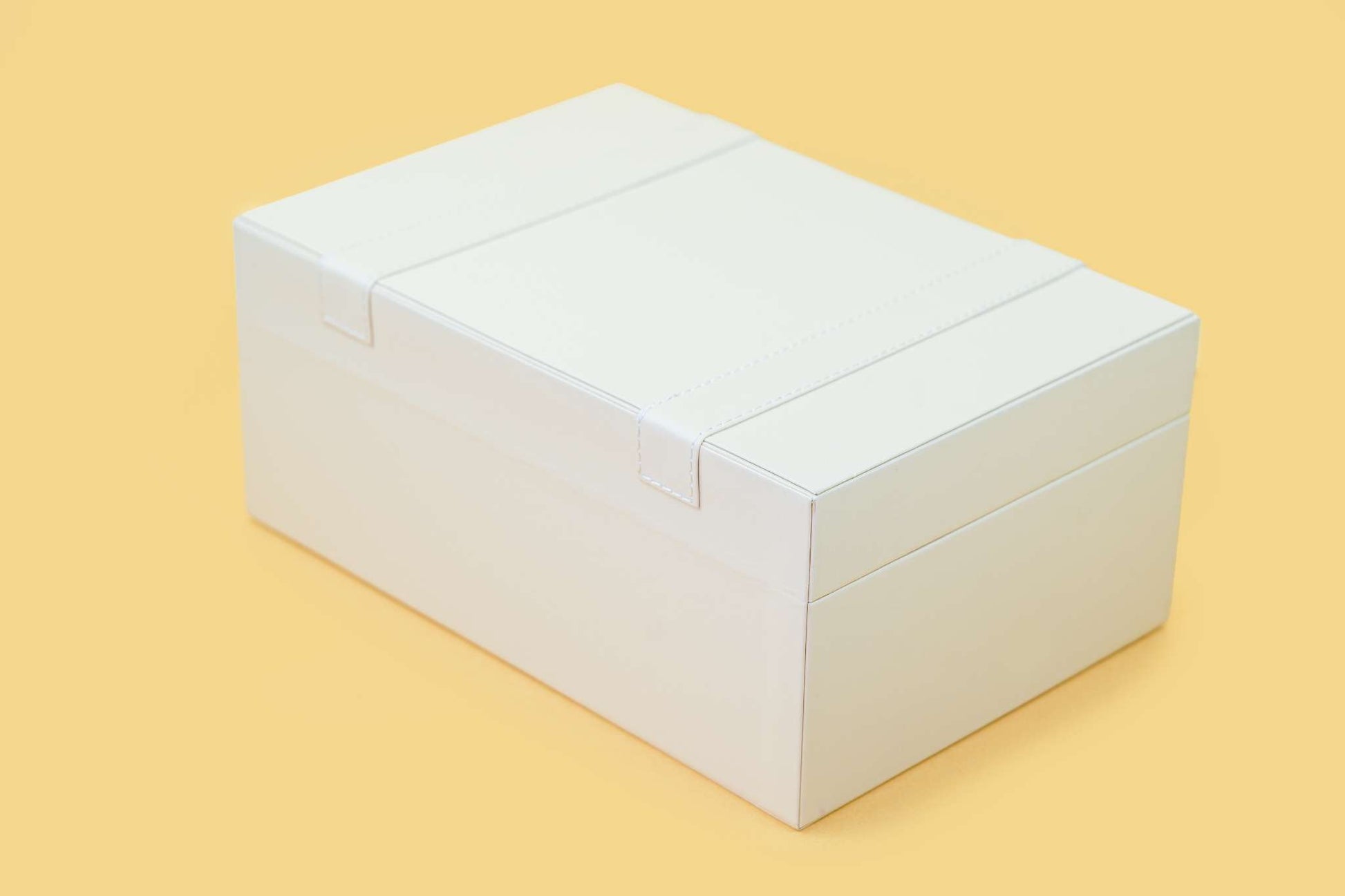 Premium trunk design – structured ivory box with elegant gold buckle detail